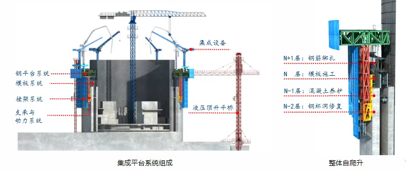 核島施工平臺,是基于超高層住宅建筑的“住宅造樓機”和摩天大樓的“空中造樓機”技術(shù)而研發(fā)的核電反應(yīng)堆廠房專屬施工技術(shù),該技術(shù)通過內(nèi)外殼等高同步施工、立面流水作業(yè)、設(shè)備設(shè)施集成等方式,提升施工工效、縮短施工周期、降低安全風(fēng)險。