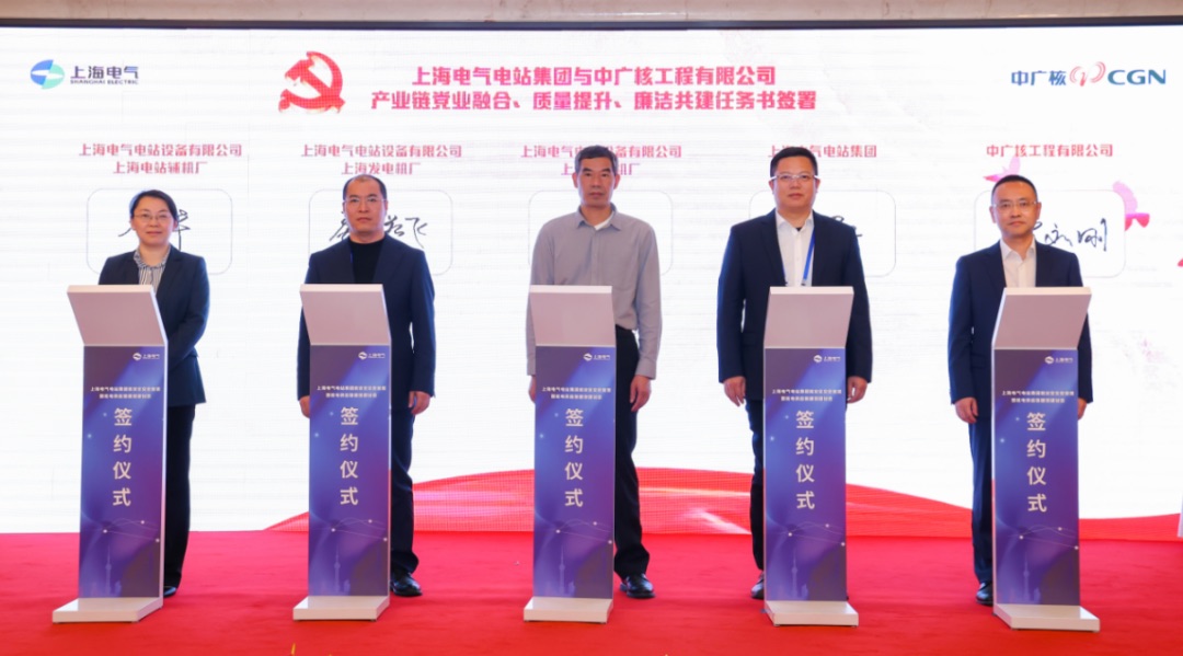 ??論壇最后,中廣核工程聯(lián)合上海電氣電站集團(tuán)等5家企業(yè)開(kāi)展黨業(yè)深融共建活動(dòng),簽署“華龍一號(hào)黨員攻堅(jiān)先鋒隊(duì)”2025年攻堅(jiān)任務(wù),對(duì)設(shè)備交付、科研計(jì)劃、現(xiàn)場(chǎng)服務(wù)中心成立、到貨類(lèi)NCR數(shù)量下降等方面任務(wù)進(jìn)行了部署,以推進(jìn)產(chǎn)業(yè)鏈伙伴間的高質(zhì)量合作,為打贏華龍一號(hào)批量建設(shè)攻堅(jiān)戰(zhàn)奠定堅(jiān)實(shí)基礎(chǔ)。